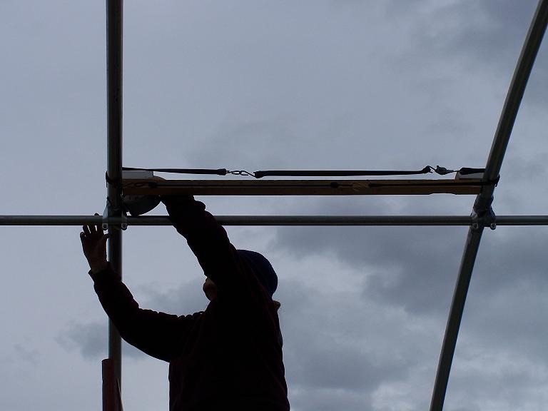 Everyone grabbed a rope and pulled the cover over the rafters. It was easy. |